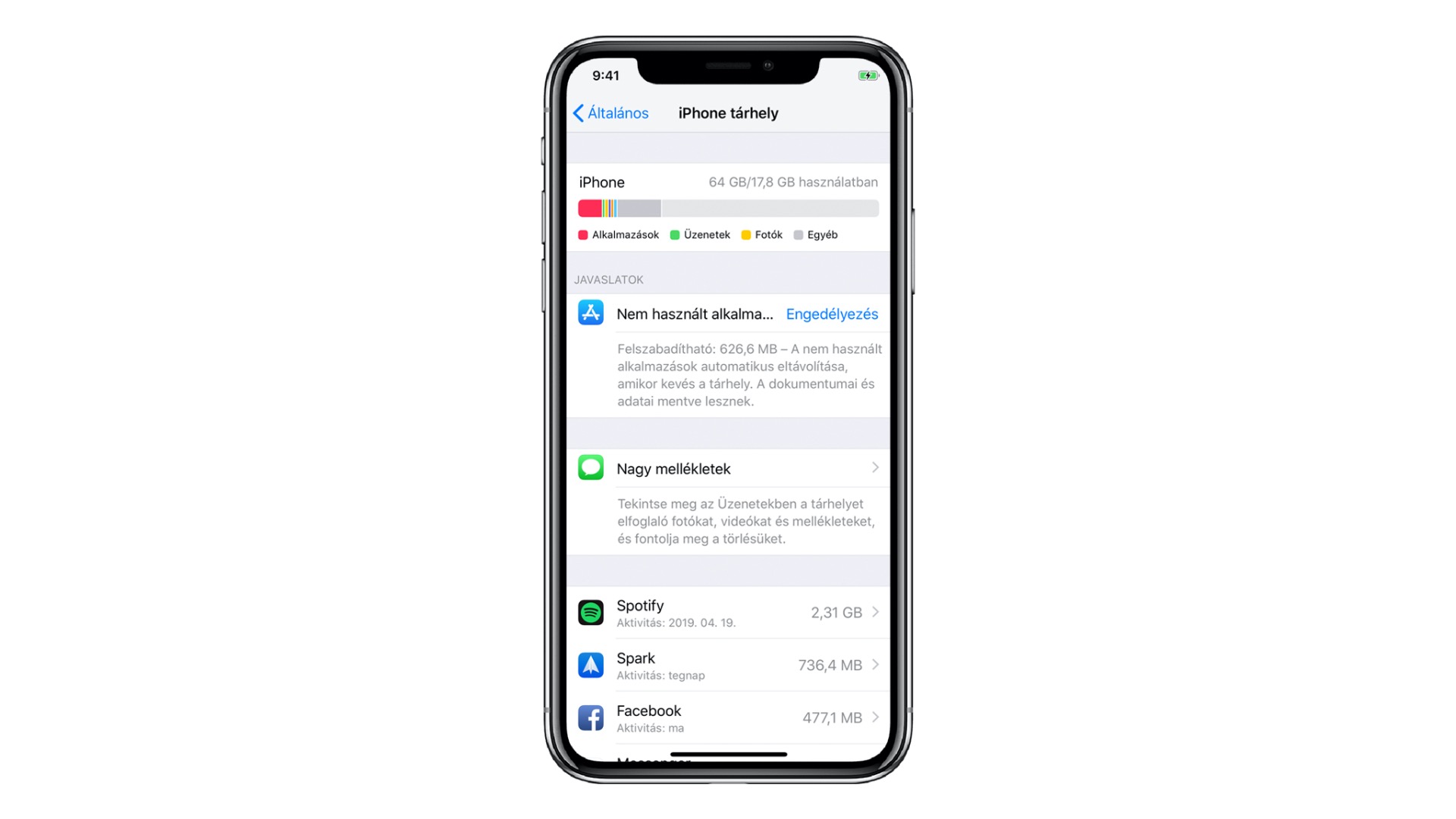 Ezzel a megoldással könnyedén csökkentheted az Üzenetek alkalmazásban felgyülemlett adatokat. Utolsó lépésként menj vissza az iPhone tárhely menübe és nézd végig az alkalmazások listáját. A legtöbb alkalmazás olyan adatokat tárol, melyek az Alkalmazások kategóriába kerülnek, de néhány tartalmaz olyat, melyek az Egyéb kategóriába esnek. Ha például a Podcast alkalmazást több gigabájtnyi helyet foglal el, valószínűleg a felgyülemlett ideiglenes adat miatt van. Ha kitöröld az alkalmazást és újra letöltöd, akkor azok is automatikusan törlésre kerülnek és így csökkentheted az Egyéb kategória méretét.