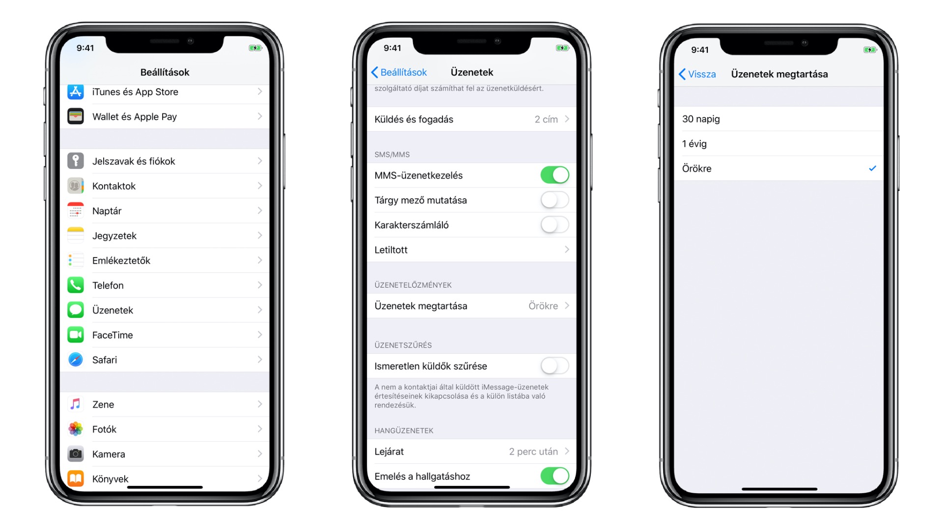 - Koppints az Üzenetek megtartása opcióra. Alapértelmezettként az ‘Örökre’ beállítást láthatod