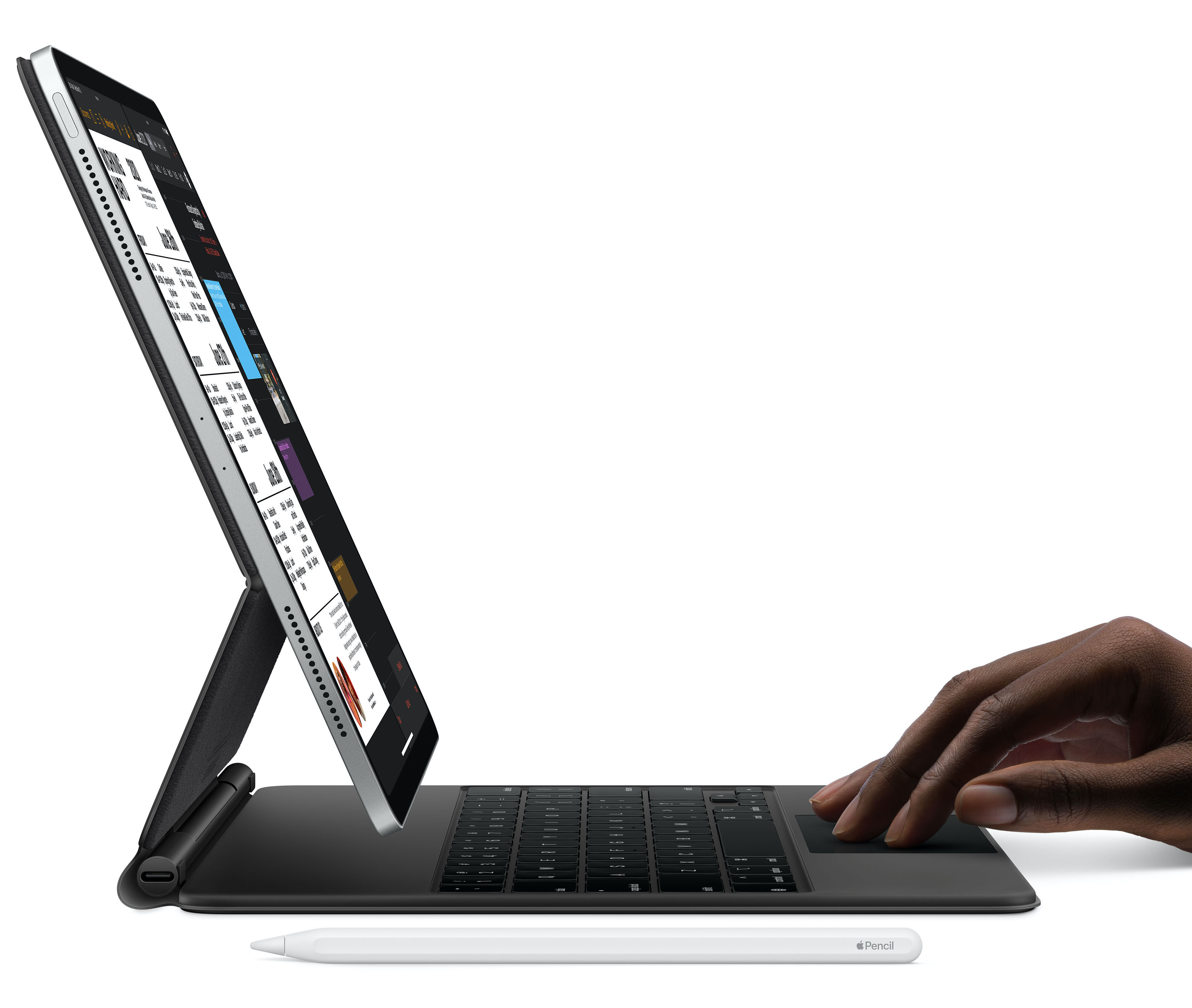 A márciusi termékfrissítés legizgalmasabb újdonsága kétségkívül a 2020-as iPad Pro mellett bemutatott új billentyűzetes tok volt, amit trackpaddel és háttérvilágítású billentyűzettel is felszereltek. A trendeknek megfelelően itt is ollós billentyűmechanikára váltott az Apple és ugyanazt az 1mm-es billentyűutat ígérik, amit a MacBook-ok esetében.