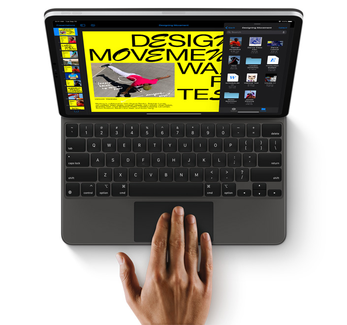 Az új Magic Keyboard egy újratervezett trackpad-del is fel lett szerelve, ami az iPad OS használatának egészen új módját kínálja. A gyártó ígéretei alapján az új kurzor segítségével sokkal könnyebben tudunk majd dolgozni és navigálni a rendszerben, hiszen az folyamatosan alkalmazkodik majd az aktuálisan végzett feladatokhoz. Attól függően, hogy milyen elem – például gomb, alkalmazásikon vagy szöveg – fölé visszük a kurzort, más és más formát ölt.
