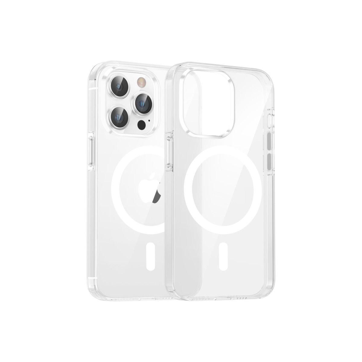 - Elegáns megjelenés: Az átlátszó dizájn és a köralakú fehér Magsafe logó modern és elegáns külsőt biztosít, megőrizve az iPhone 15 Pro eredeti megjelenését.