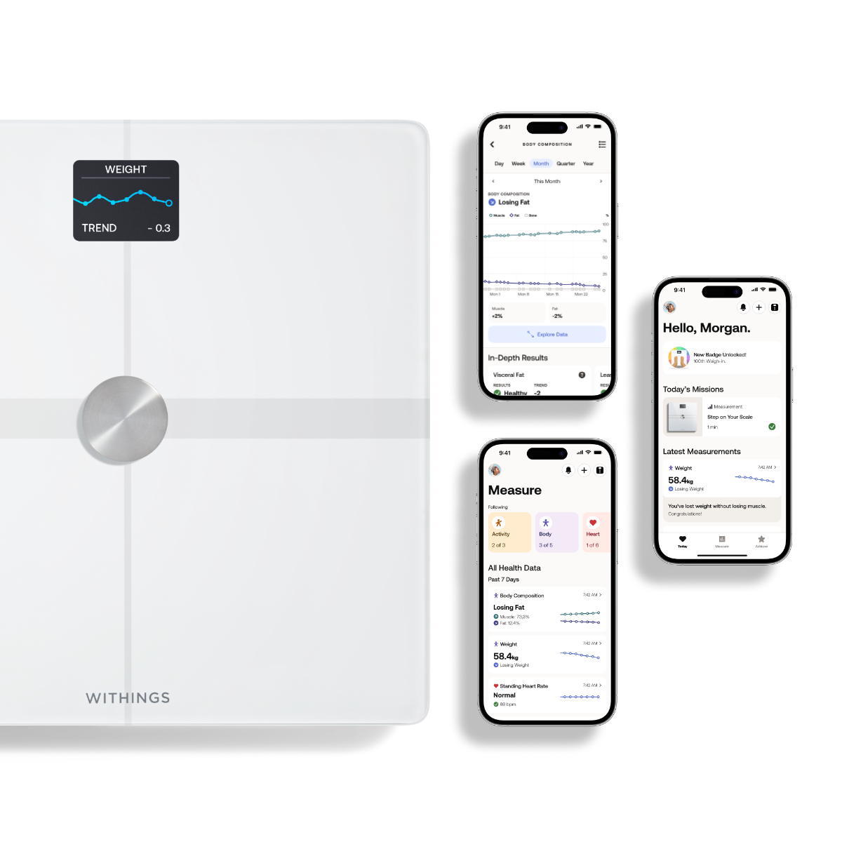 Kövesd nyomon az összes napi mutatót az ingyenes Withings alkalmazás segítségével iOS és Androidos eszközödön is akár. Trendeket, előrehaladást és napi inspirációkat is láthatsz a hosszú távú fejlődéshez, miközben az alkalmazás a kategóriájának legjobb adatvédelmét biztosítja.